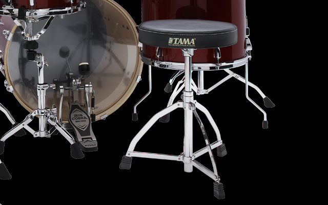 The drum throne features a 13" round seat and a base designed for excellent stability.
