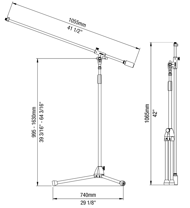 約1mに達するロングブームアームを搭載し、ドラムのオーバーヘッドやグランドピアノのマイキング用としては勿論のこと、”高さ”や”距離”を必要とする環境での使用に最適です。
