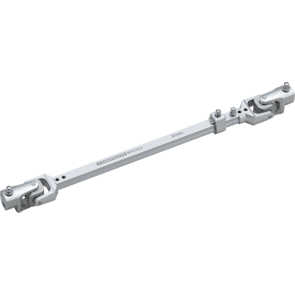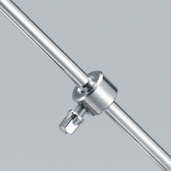 Mirror Rodは、ツインペダルの課題である左側ペダルの動きの問題を解消し、ガタのない圧倒的にスムーズな演奏感を実現するコネクティングロッドです。 ジョイント部にボールベアリングを採用してガタを極限まで排除するとともに、ボールベアリングを回転軸の中心に極限まで近づけて配置する独自の機構によって、コネクティングロッド自体を少ない力でスムーズに回転させることが可能です。さらにロッドの素材にはアルミを採用し、剛性を確保しながら軽量化を実現しています。 また、ペダルとのジョイント部分は少ない固定ネジで高い固定力を可能にする独自の構造を採用。ペダルへの取り付け方法や長さ調整の手順を簡略化し、セットアップにかかる手間と時間を大幅に削減しました。